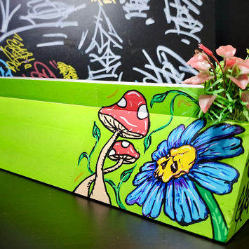 Growing up in the 90’s in Toa Baja, Puerto Rico, skateboarding and TechDecks were part of Josean’s everyday life. Although, in one shape or another, skateboarding and fingerboarding were always present throughout his life, it wasn’t until the COVID era that fingerboarding truly turned his world upside down. After countless obstacle builds using scraps from home improvement projects and sharing them with friends, Josean realized that he could provide fingerboarding enthusiasts around the world with a new choice and experience, leading to the establishment of Islander Ramps. Islander Ramps, a family-owned small business, specializes in handcrafted fingerboard obstacles built fusing PVC; a synthetic polymer that acts and behaves just like hardwood and provides a perfectly smooth, grippy and reactive surface to ride. Josean’s obstacle designs are focused on practicality with minimal aesthetics, acting as an blank canvas that allows the user to be part of the creation process. Such creation process collaboration is pictured here in the shape of a custom obstacle requested by local rider Reggie Hernandez and illustrated by local artist Elouis Morales, a truly unique and functional work of art.